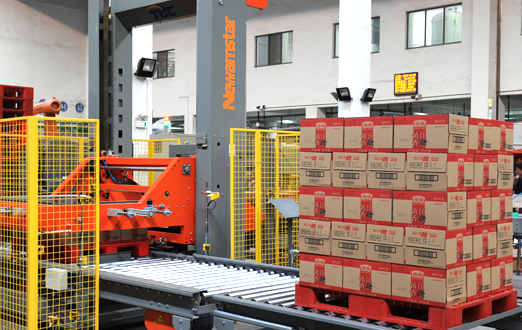 用于啤酒食品飲料行業(yè)、化工行業(yè)等,對各類瓶罐箱包進(jìn)行碼垛。生產(chǎn)能力大,適應(yīng)多種垛板及箱型,調(diào)整方便。生產(chǎn)線變換僅需修改軟件程序,垛型一鍵切換、變更產(chǎn)品操作方便。適應(yīng)于紙箱和熱收縮膜包裝的碼垛。